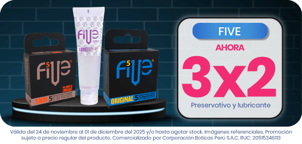 33% dsctoPrecio especial S/ 15.80 Precio normal S/ 23.703x2 Preservativo Five Premium Retardante Puntos - Caja 5 UN -