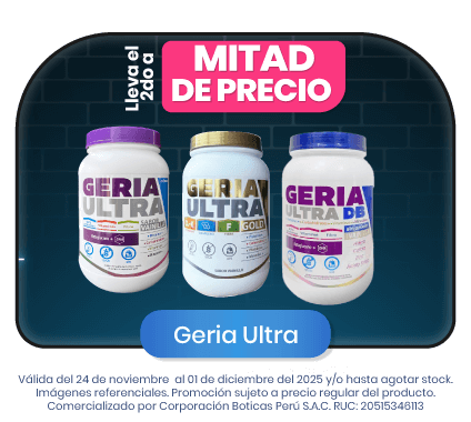 25% dsctoPrecio especial S/ 149.85 Precio normal S/ 199.80Dúo Pack GeriaUltra Gold Sabor Vainilla - Pote 1Kg -