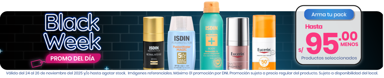 25% dsctoPrecio especial S/ 286.20 Precio normal S/ 381.80Pack Eucerin Antipigment Serum Dual 30 ML + Eucerin Sun Anti Manchas 50 ML - 2 UN -