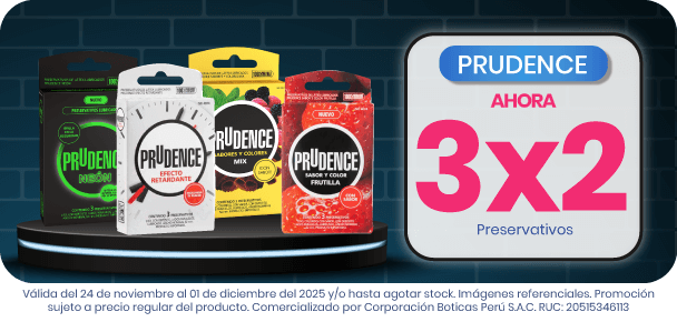 33% dsctoPrecio especial S/ 12.40 Precio normal S/ 18.603x2 Preservativo Prudence Vete A La Versh - Caja 5 UN
