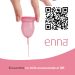 La copa menstrual Enna es un recipiente que se inserta en la vagina durante la menstruación para depositar el flujo menstrual. Debe scanear el QR que viene en cada caja para conocer su talla. A diferencia de los tampones, que también se usan internamente, la copa menstrual no absorbe la sangre; ésta queda contenida en el interior de la copa hasta que se extrae de la vagina y se desecha el líquido.No modifica el pH vaginal y no interfiere en la flora vaginal por lo que no desestabiliza la capacidad natural de protección. El material es silicona de grado médico, inerte, por lo que no permite que los gérmenes se acumulen en ella. se puede utilizar hasta 12 horas y se puede llevar puesta toda la noche. La alternativa más saludable para tu cuerpo y sostenible para el medio ambiente: dura hasta 10 años.