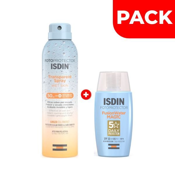 Pack Isdin Fotoprotector Fusion Water Magic 50 ML + Tranparente Spray Wet Skin 250 ML - Pack 2 UN