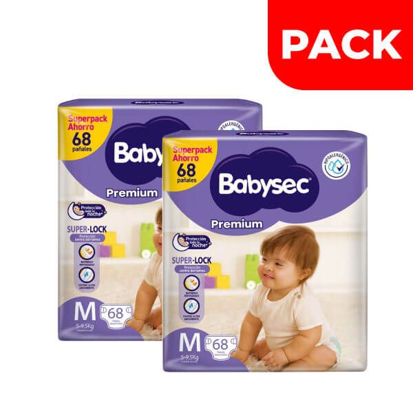 Dúo Pack Pañal Babysec Premium Super Mega Talla M - Bolsa 68 UN