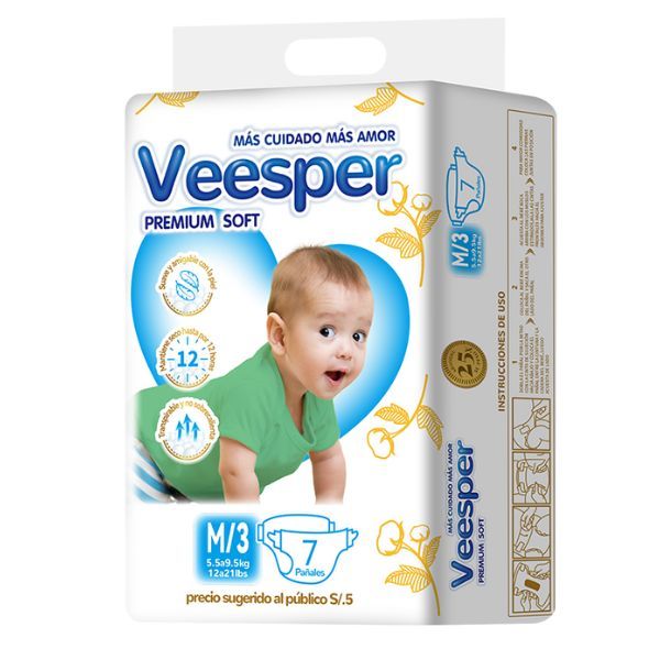 Pañal Paquetito Veesper Premium Sotf Talla M - Bolsa 7 UN