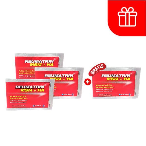 Contraindicaciones | REUMATRIN MSM+HA está contraindicado en pacientes con hipersensibilidad a cualquiera de sus componentes, pacientes embarazadas y durante periodos de lactancia.